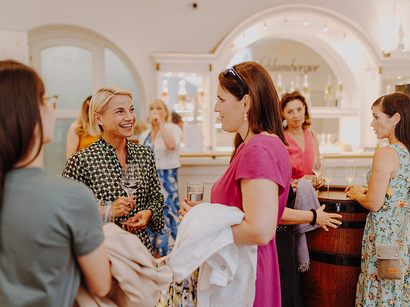 Rund 50 erfolgreiche Frauen aus Kunst, Kultur und Wirtschaft folgten der Einladung von Sekt-Austria-Botschafterin Kristina Sprenger zum prickelnden Networking in die Sektkellerei Schlumberger. Ganz nach dem Motto „Learning by Doing“ konnten sich die anwesenden Damen selbst am Versekten versuchen und sich am guten Geschmack der drei Kategorien von Sekt Austria delektieren.