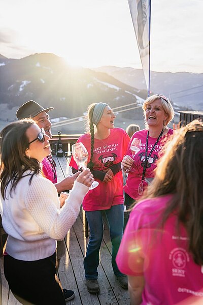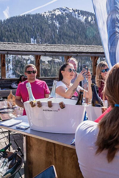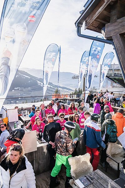 Was passiert, wenn sich 19 der besten Hersteller*innen von Sekt Austria in die Skiregion Hochkönig begeben? Sie krönen Sonne, Schnee und Skivergnügen mit feinen Perlen im Glas! Beim Einkehrschwung zwischen der Tiergartenalm in Mühlbach, der Steinbock Alm in Dienten und der Tom Almhütte in Maria Alm konnten die Besucher*innen Sekt Austria in seiner prickelnden Vielfalt verkosten und genießen.