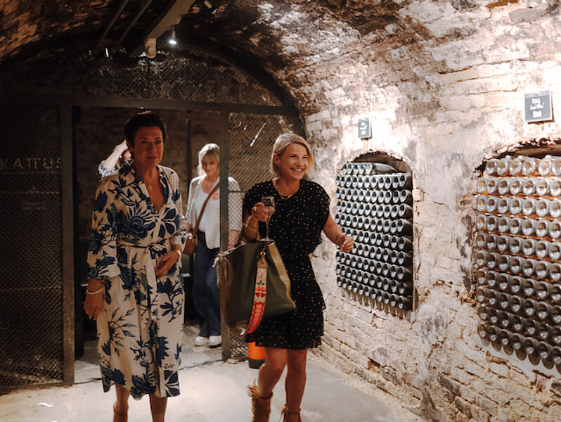 Mehr als 60 erfolgreiche Frauen aus Kultur, Medien, Wirtschaft und Politik folgten der Einladung. Nach feierlichen Begrüßungsworten und einer von Johannes Kattus geführten Tour durch die Kellerei ging es zur Verkostung von Sekt Austria-Spezialitäten der Top-Hersteller Bründlmayer, Harkamp, Jordan, Kattus, Masser, Regele, Schlumberger, Steininger, Ubl-Doschek und Zuschmann-Schöfmann in den drei Kategorien Sekt Austria, Sekt Austria Reserve und Sekt Austria Große Reserve. Zu den Damen und auch einigen Herren, die sich an diesem Abend auf die prickelnde Reise durch Österreich begaben, zählten u. a.: Andrea Händler (Kabarettistin), Maria Großbauer (GF Stadttheater Wiener Neustadt), Inge Maux (Schauspielerin), Niki Osl (miss lillys hats), Mag. Alexandra Graski-Hoffmann (M.A.C. Hoffmann), Annemarie Foidl (Wirtin Angerer Alm & Präsidentin Sommelier Union Austria), Sylvia Marz-Wagner (SKYunlimited), Lenka Pohoralek (Dancing Star Profi), Samantha Steppan (Schauspielerin), Pia Strauss (Schauspielerin), Barbara Rynes (TV friends) oder Anna Vollwesen (Künstlerin).