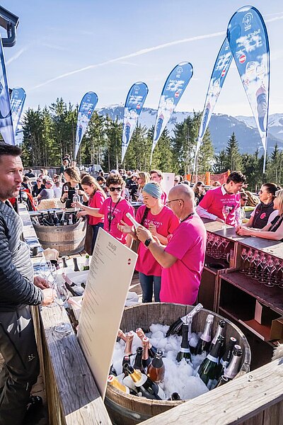 Sekt Austria im Schnee lockte bei strahlendem Sonnenschein zahlreiche Besucher an und begeisterte mit prickelndem Sektgenuss inmitten der verschneiten Bergwelt. Mit einer prickelnden Rallye und Party brachten die Sekt-Austria-Hersteller*innen die Alpen sprichwörtlich zum Beben.