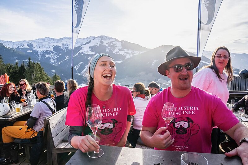 Was passiert, wenn sich 19 der besten Hersteller*innen von Sekt Austria in die Skiregion Hochkönig begeben? Sie krönen Sonne, Schnee und Skivergnügen mit feinen Perlen im Glas! Beim Einkehrschwung zwischen der Tiergartenalm in Mühlbach, der Steinbock Alm in Dienten und der Tom Almhütte in Maria Alm konnten die Besucher*innen Sekt Austria in seiner prickelnden Vielfalt verkosten und genießen.